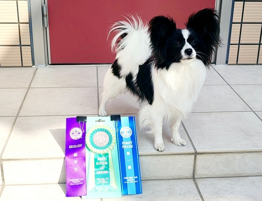 ドッグショーで、パピークラスBОB、ジュニアクラスBОB・BOSも頂いています!