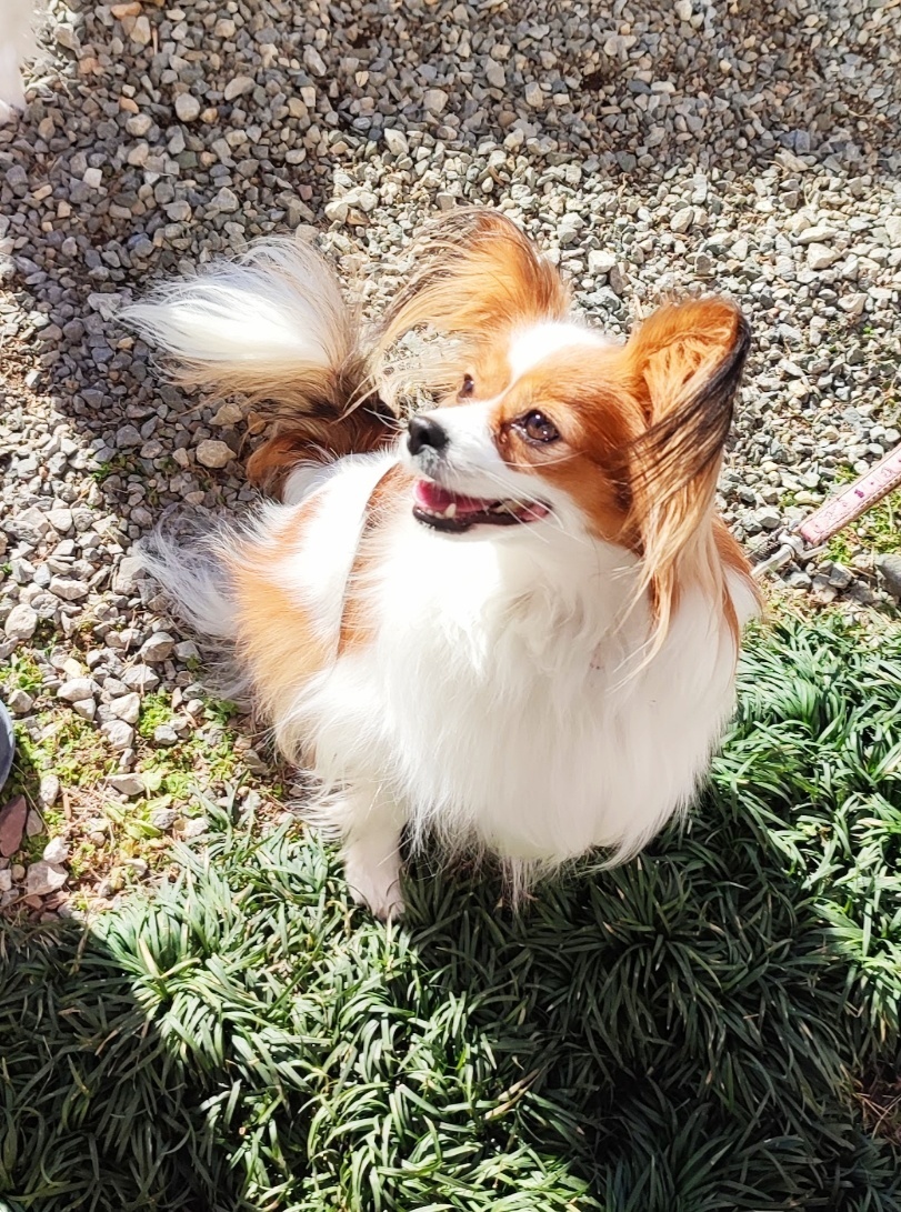 おっとり系のパピヨンとお散歩で癒されてみませんか~ レンタルご希望の方は、ピンちゃんがイチオシ!どうぞ会いにお越しください。